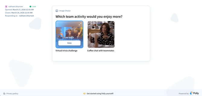This makes image pollys ideal for interactive meetings, team events, or workshops where visual voting can drive engagement.