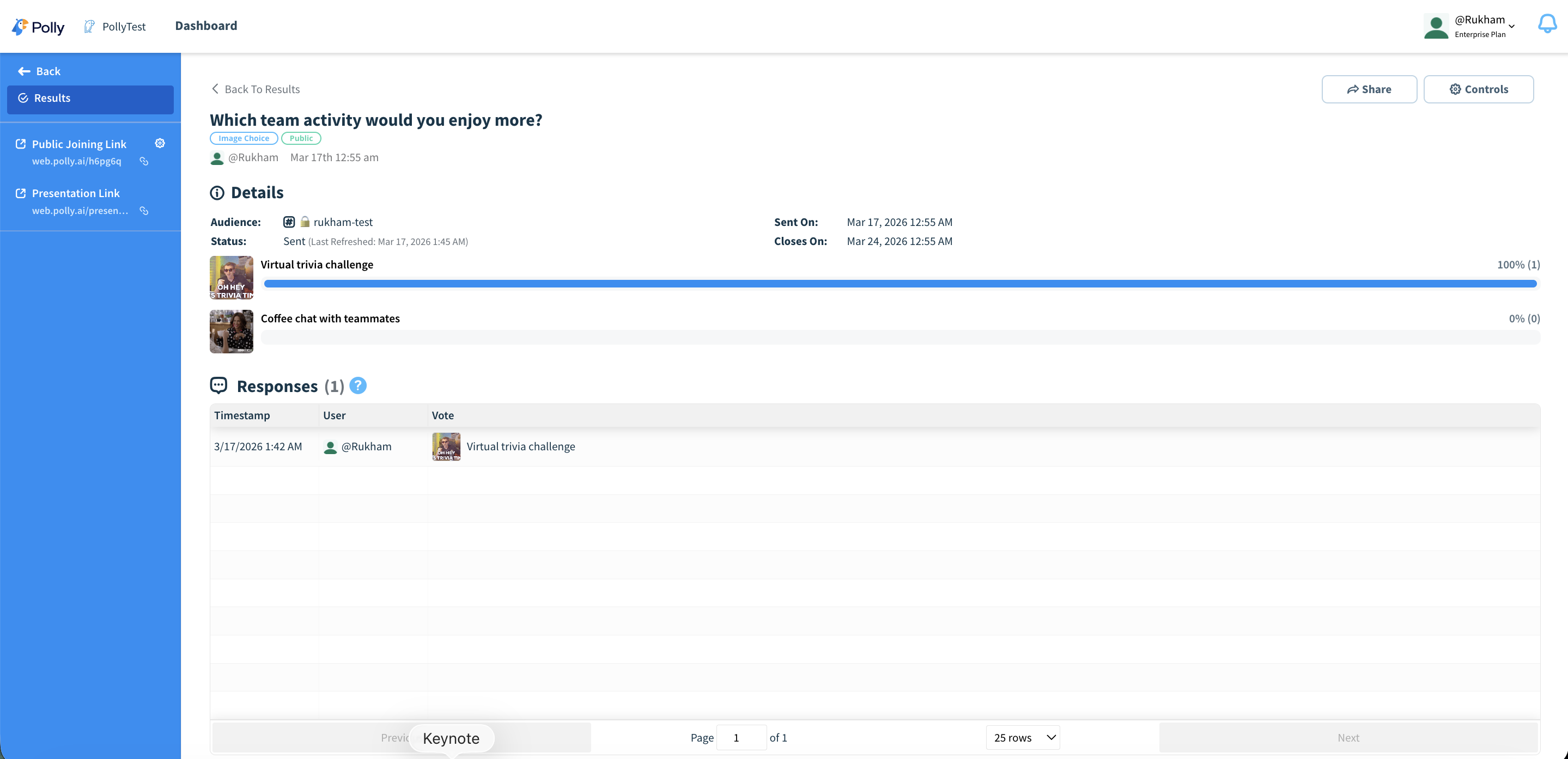 Responses to image pollys are displayed in the Polly results dashboard, where each option appears with its corresponding image. This makes it easy to visually identify which option participants selected.