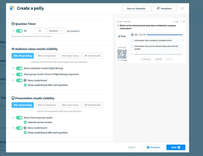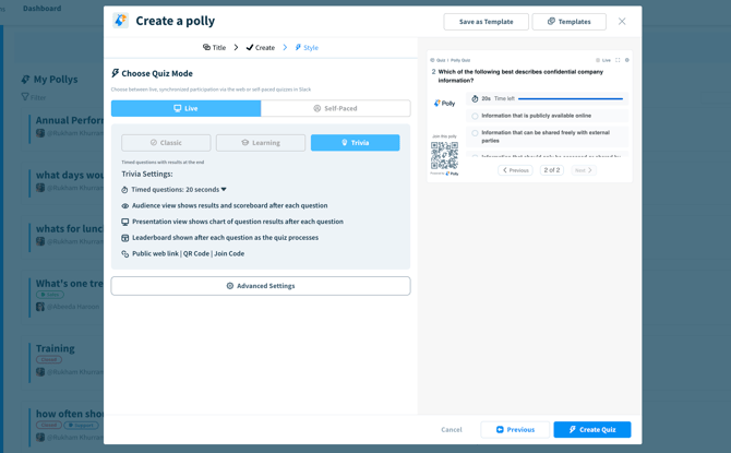 Polly includes several quiz styles that control how the quiz experience behaves.