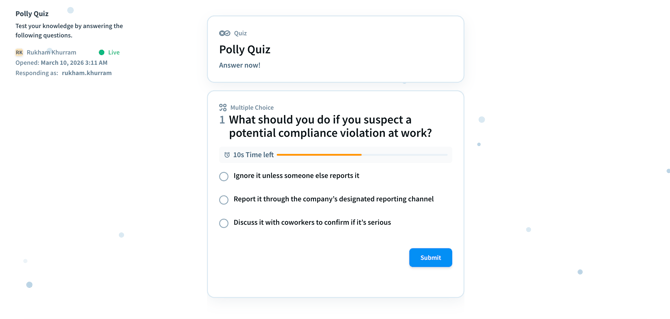 Learn how to create and run interactive quizzes using Polly to test knowledge, run training assessments, and measure understanding across your team.