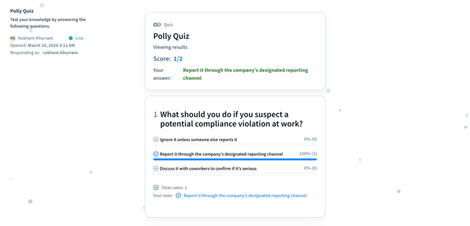 This style is ideal for onboarding quizzes, compliance training, or educational sessions where participants should focus on learning outcomes. -
